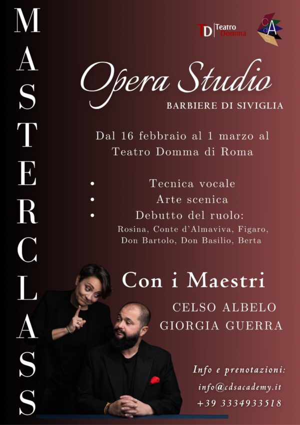 Il CdS Academy Opera Studio rappresenta un’occasione di formazione, confronto e debutto, pensata per chi desidera vivere l’opera non solo come studio, ma come esperienza teatrale completa. “Il Barbiere di Siviglia” è inserito nella stagione artistica 2025/2026 del Teatro Domma ed i biglietti sono acquistabili a seguente link.
