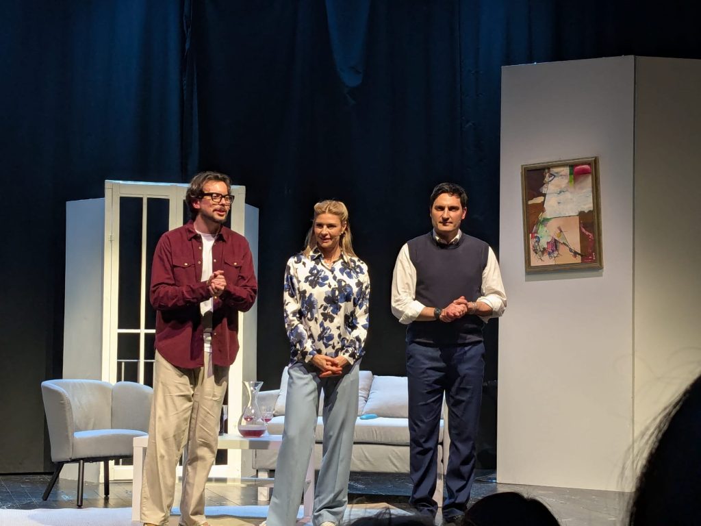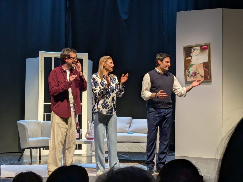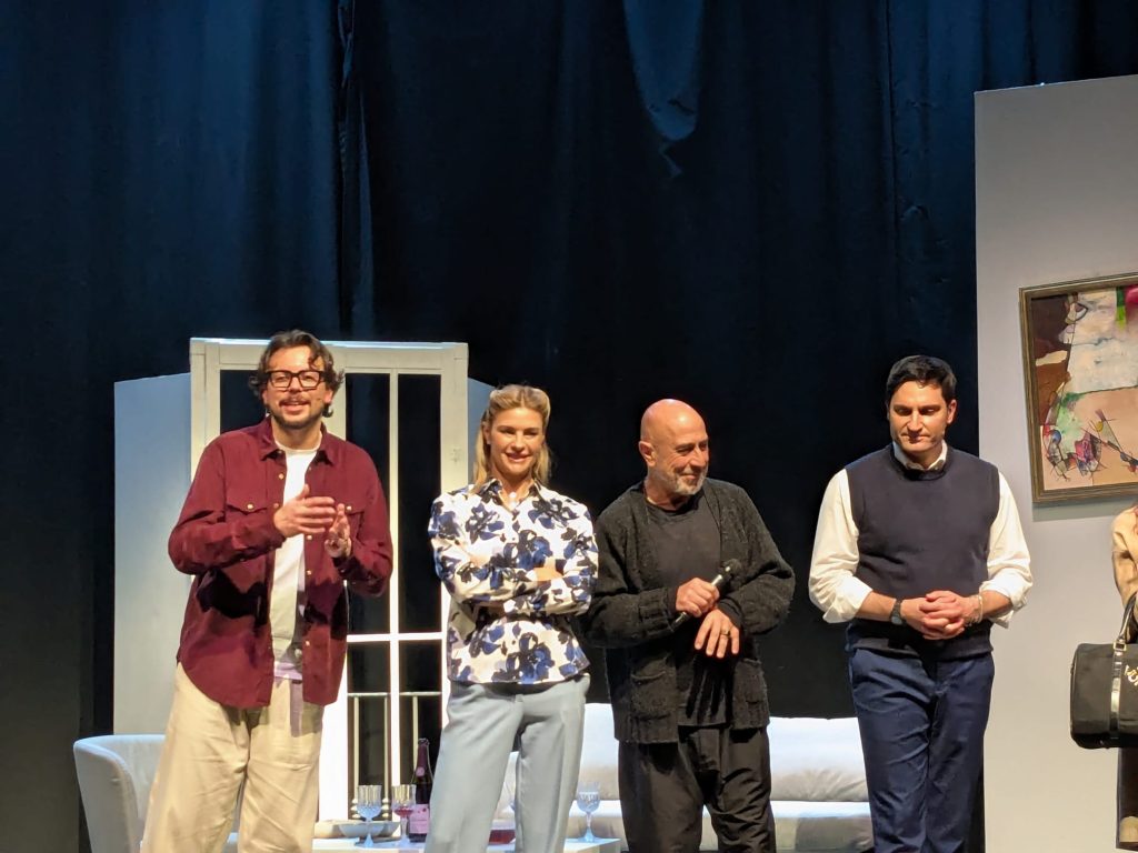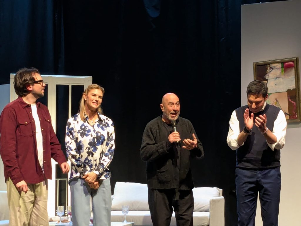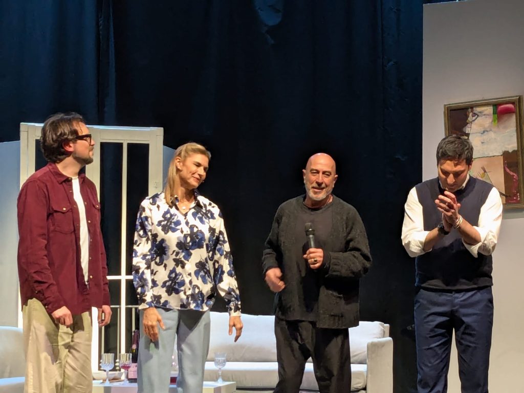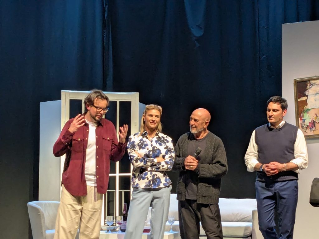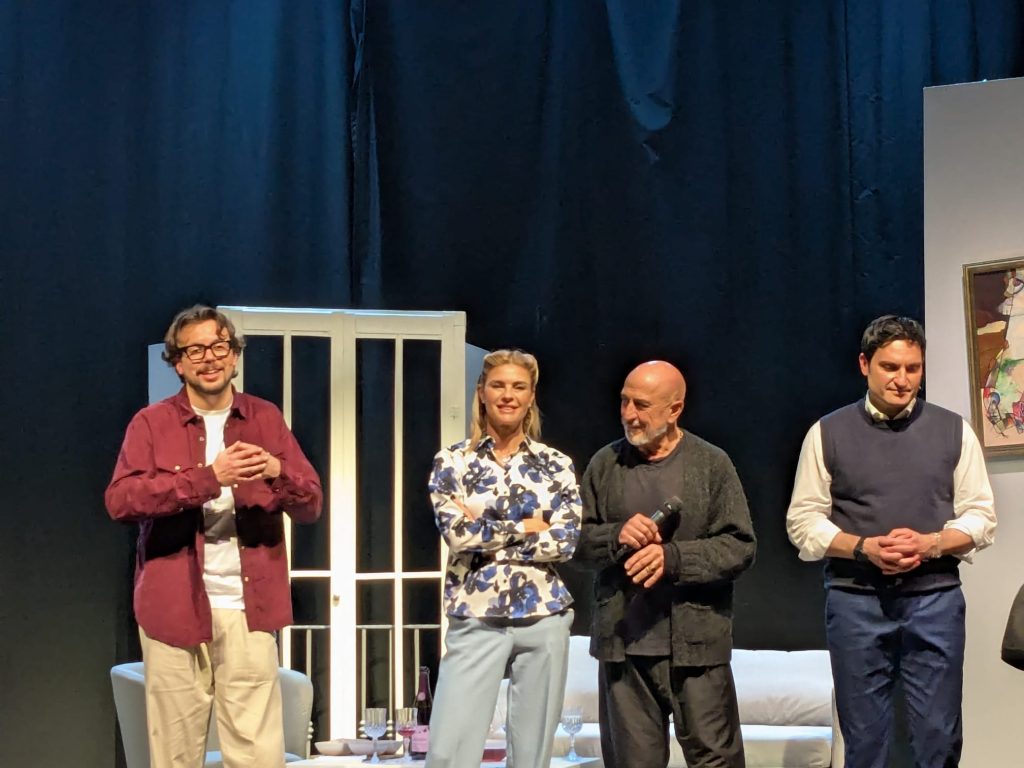 Ringraziamenti e saluti al caloroso pubblico presente in teatro per il debutto nazionale assoluto della commedia di Jean Pierre Martinez, per la traduzione italiana di Annamaria Martinoli.