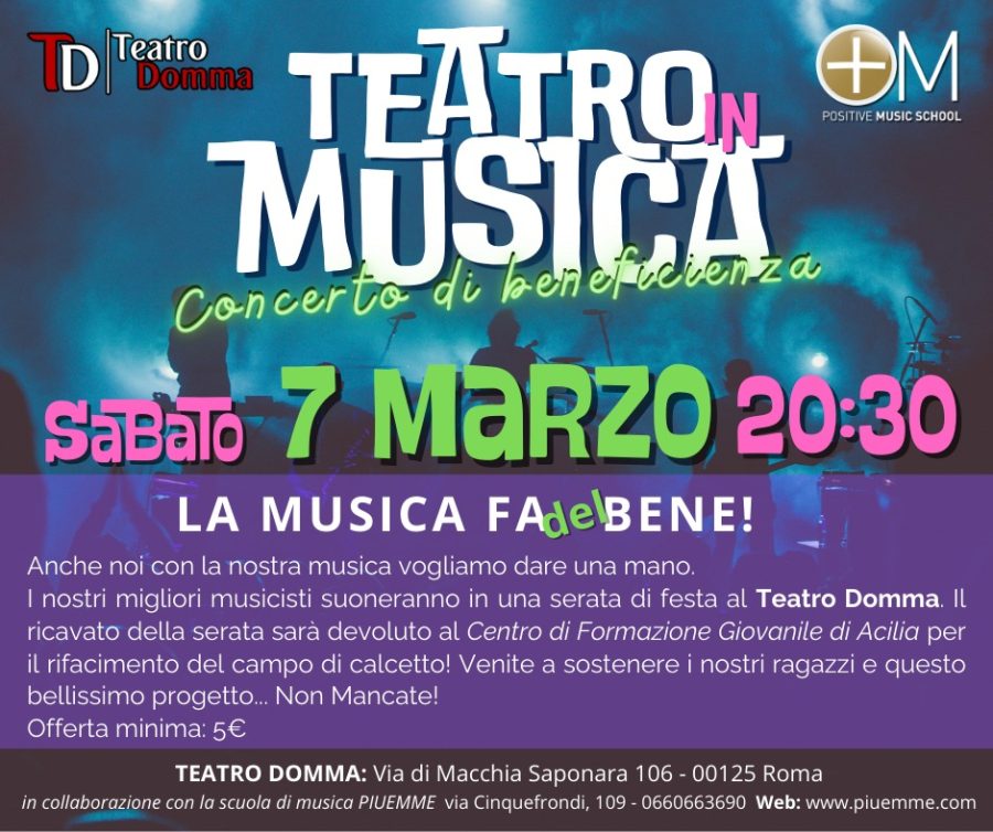 Sabato 7 marzo concerto di beneficenza della Scuola di musica PIUEMME a favore del Centro di formazione giovanile Madonna di Loreto – Casa della Pace. Con la partecipazione dei The Parrock.